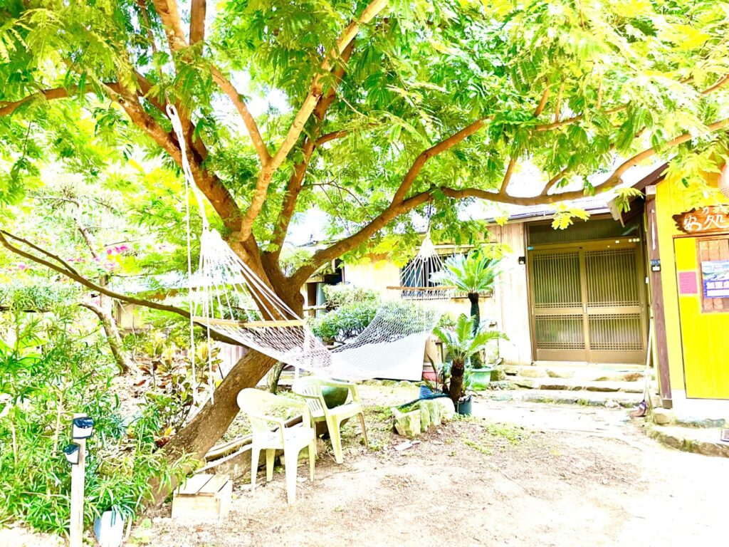 お庭のハンモックと一緒にお店が見えてきます。
