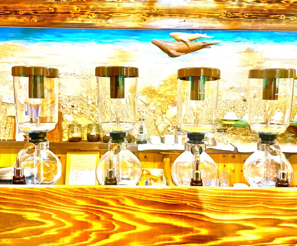 カウンターにはピカピカに磨かれたサイフォンが並んで、