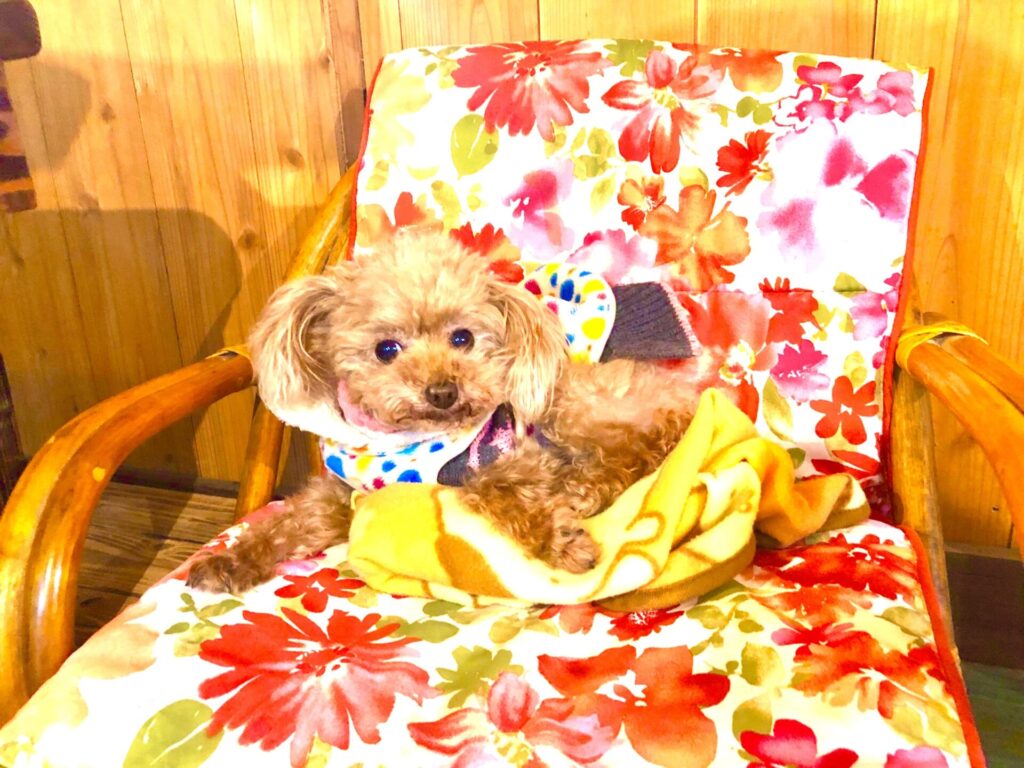 食事中にはワンちゃん専用の座椅子で