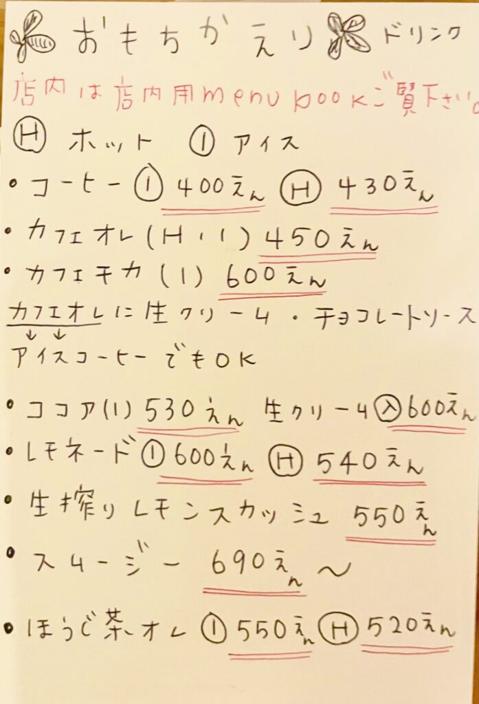 カフェメニューには、
