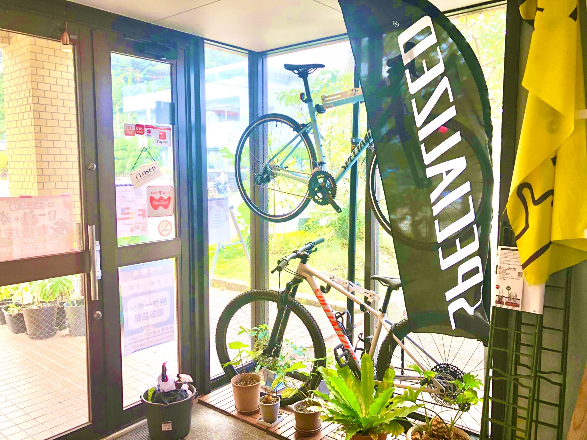 入って右側は自転車ショップになっています。